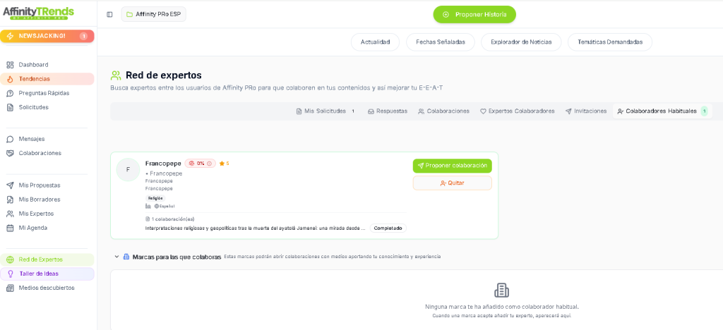 Con Affinity Trends podrás crear historias para medios en base a lo que está ocurriendo en cada momento.