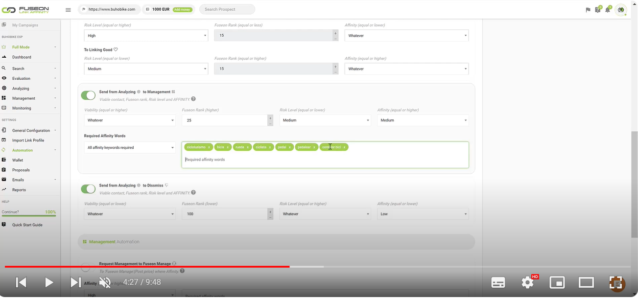 VÃdeo promocional sobre las principales funcionalidades de Link Affinity