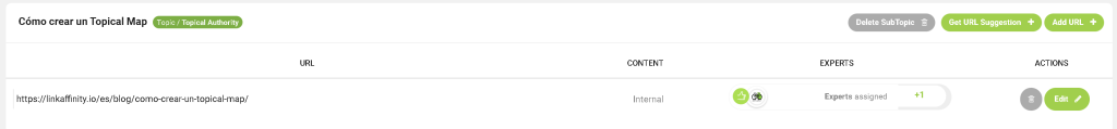 Aquí puedes ver con en nuestra funcionalidad de «Topical Content» no solo puedes diseñar tu mapa temático sino asignar expertos a cada uno de los contenidos.