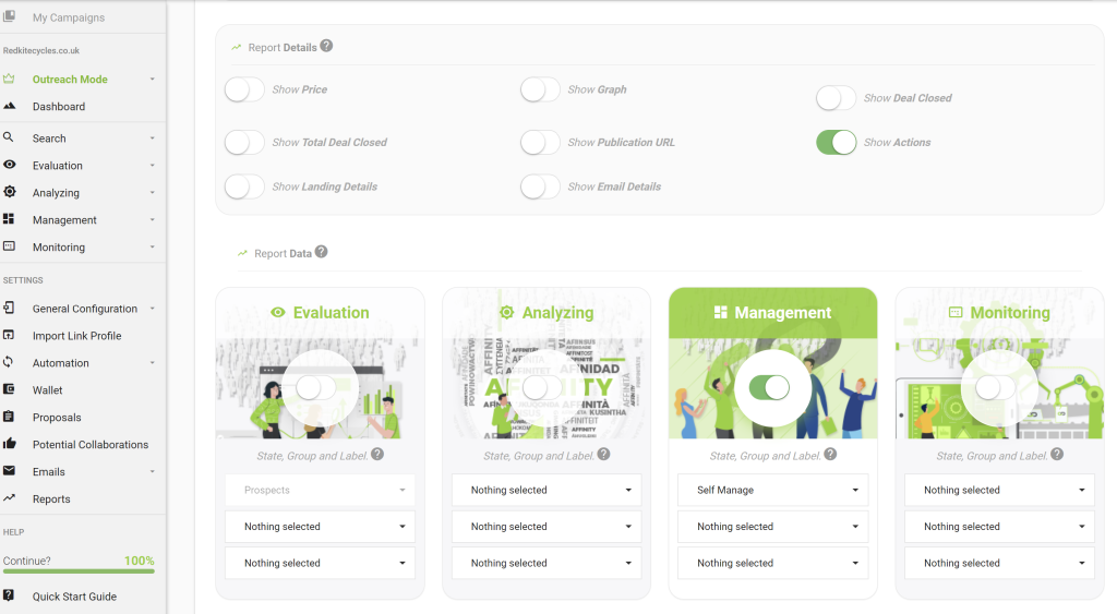 Existen herramientas en el mercado que te ayudarán con esta tarea. En Link Affinity damos especial relevancia al área de reportes para que las agencias que ofrecen este tipo de servicios de link building, puedan poner en valor sus esfuerzos. Por medio de reportes personalizados puedes enviar a tus clientes cualquier tipo de acción que quierras destacar. Hemos desarrollado un módulo de CRM para link building y relaciones públicas digitales pensado en poner en valor tus esfuerzos enviando notas de prensa, solcitando un cambio en un enlace roto, ofreciendo una colaboracion con tus expertos para un tema destacado o cualquier otro tipo de acción. Estos reportes podrás exportarlos a .CSV o .PDF.